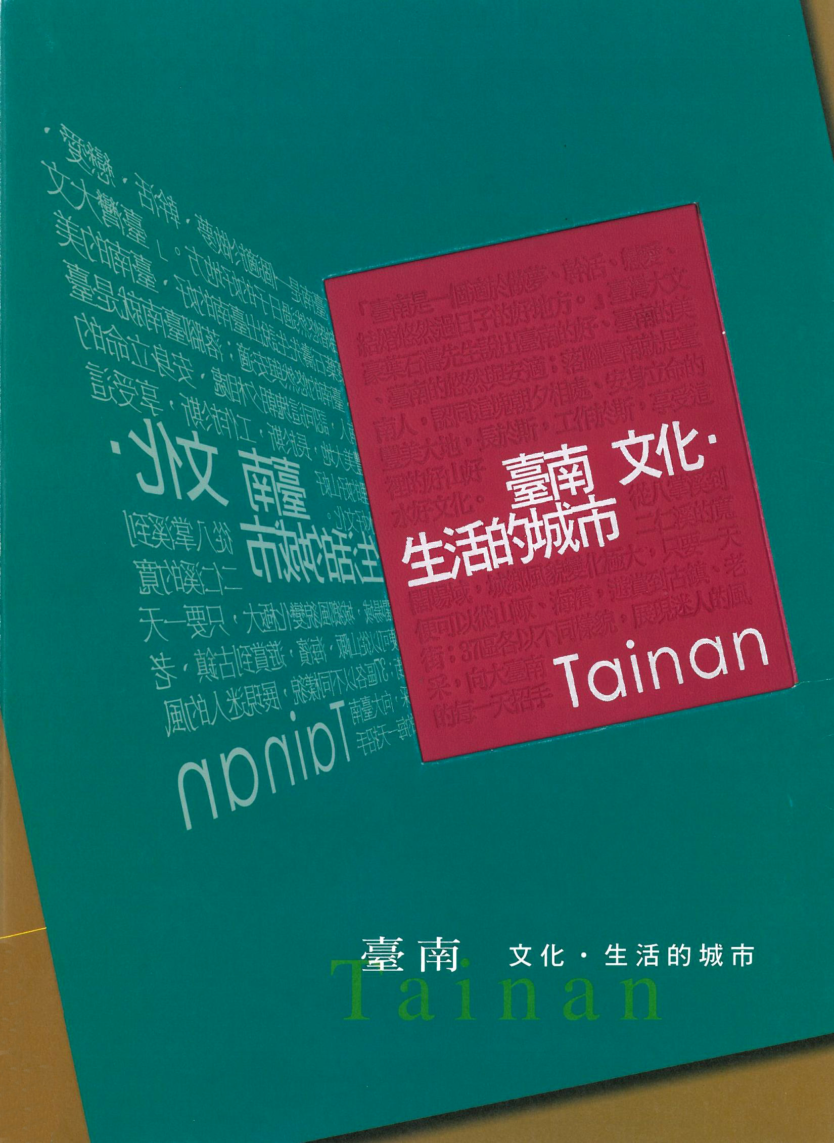 臺南的美麗,映照於四季,映照於每一天,多變的地景,悠久的歷史,孕育出壯麗優美的自然景觀與深厚溫潤的人文意趣,還有豐饒多樣的特產美食、熱鬧溫馨的民俗廟會,在城市轉角、聚落一隅更有數不清的舊街老店、傳統藝師……。如此多元、精采的文化資產,我們特以「臺南人的文化生活」為主軸,串起臺南市傳統文化印象與現代生活影像,將大臺南的好山好水好文化予以連結,呈顯「文化首都」的多樣面貌與不凡價值,藉以建構大臺南的文化生活風格。